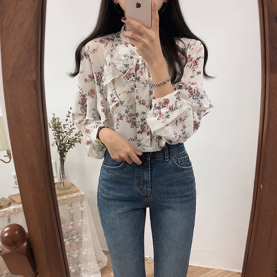 トップス ブラウス 袖あり 長袖 ボリューム袖 Uネック ボートネック フレア シフォン フリル かわいい 大人可愛い きれいめ シンプル 大人 上品 おしゃれ お洒落 レトロ 大人可愛い 大人女子 柄 花柄 小花柄 フラワー 春 秋 冬 10代 20代 レディース OL 学生 デート お出かけ 公園デビュー 女子会 お泊まり 休日 韓国 韓国系 オルチャン モテ サイズ S M L XL 色展開 白 ホワイト 黒 ブラック