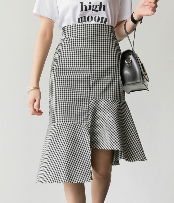 ギンガムチェック スカート ひざ丈 ミモレ丈 フレア 細身 アシンメトリー 切り替えデザイン ハイウエスト ウエストゴム 大人可愛い きれいめ 上品 おしゃれ ラブリー キュート 抜け感 清楚 着映え お嬢様 チェック柄 春 夏 レディース デート お出かけ 休日 リゾート 旅行 モテ 体系カバー 美脚 脚長 インスタ映え S M L XL ホワイト 黒 ブラック