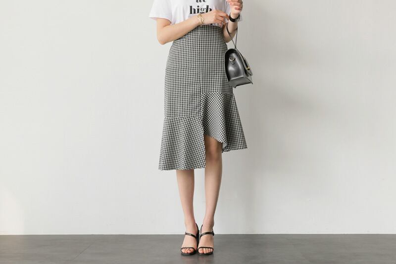 アシンメトリーな裾が可愛いギンガムチェックのスカートです。