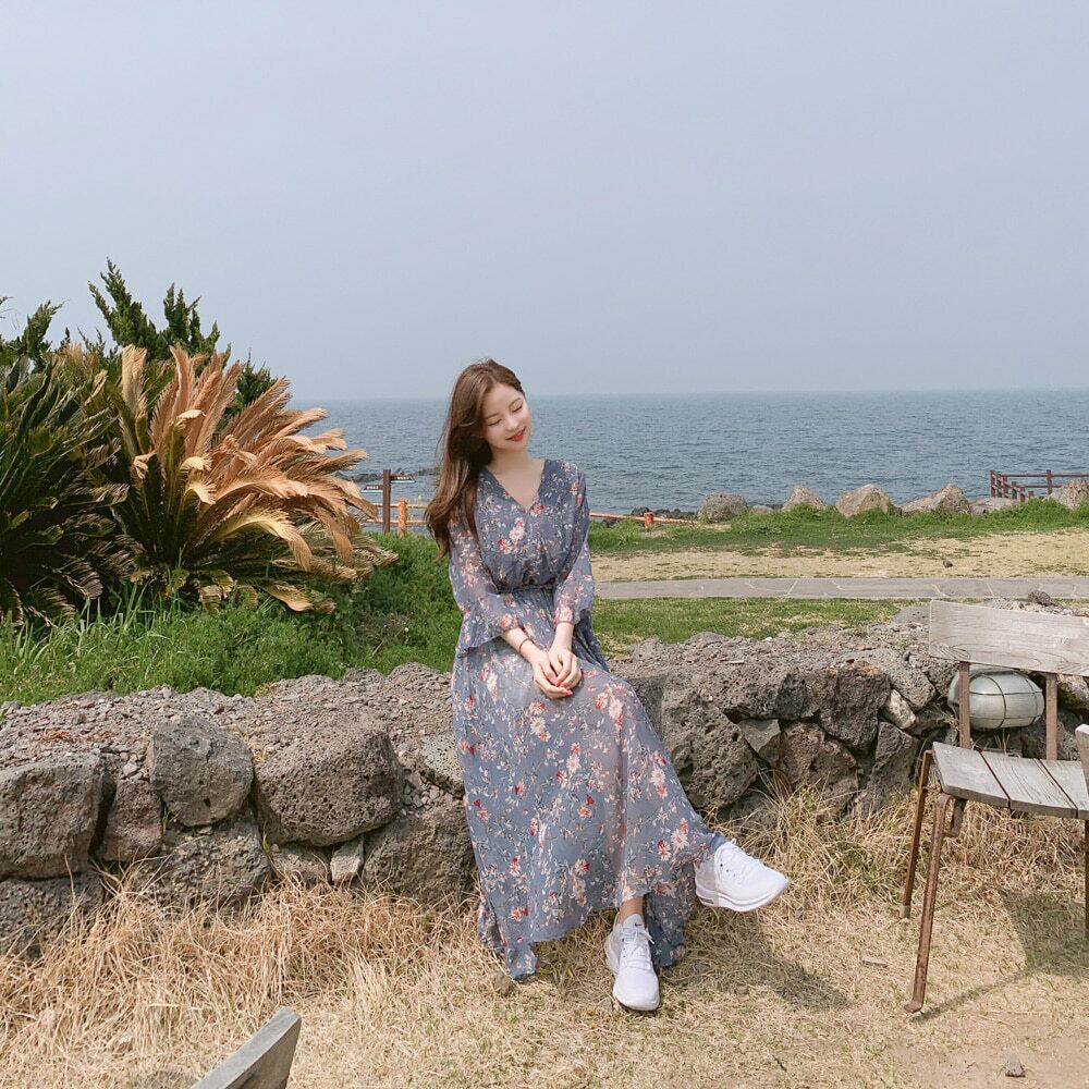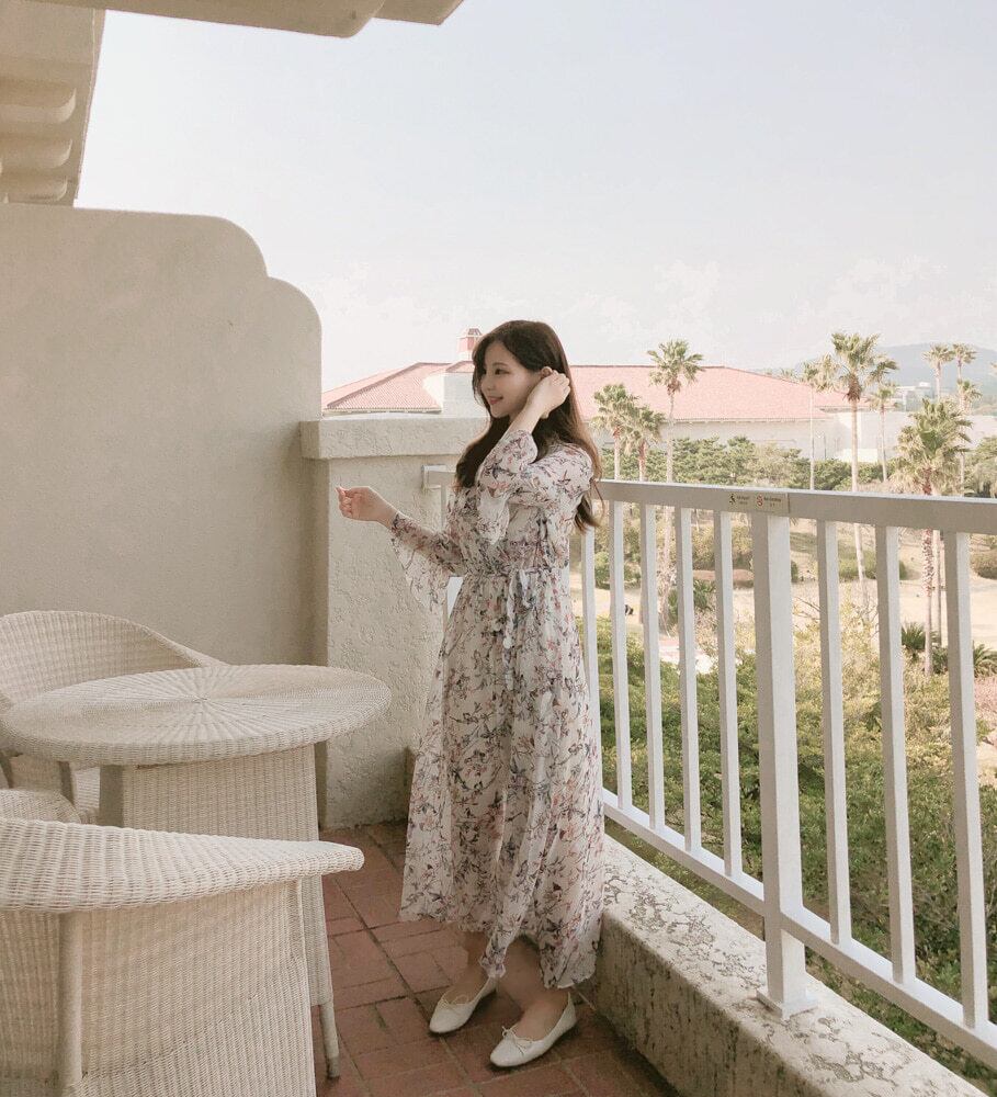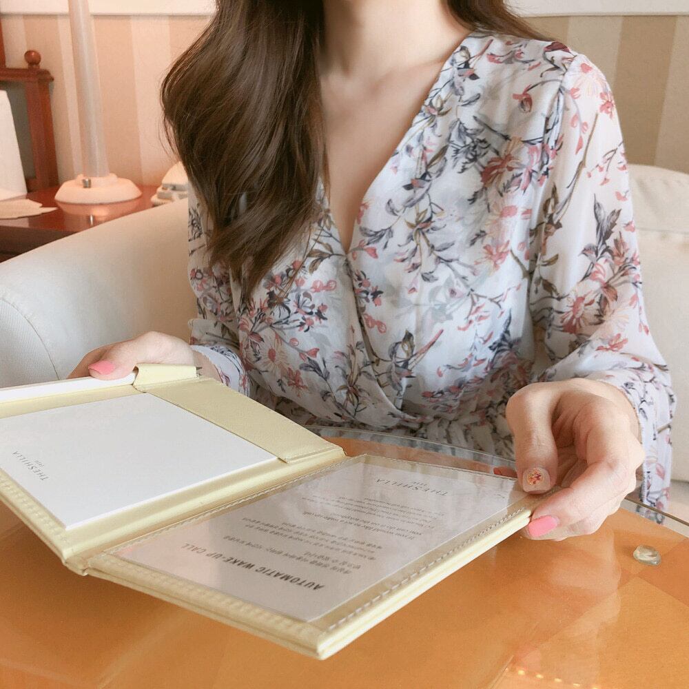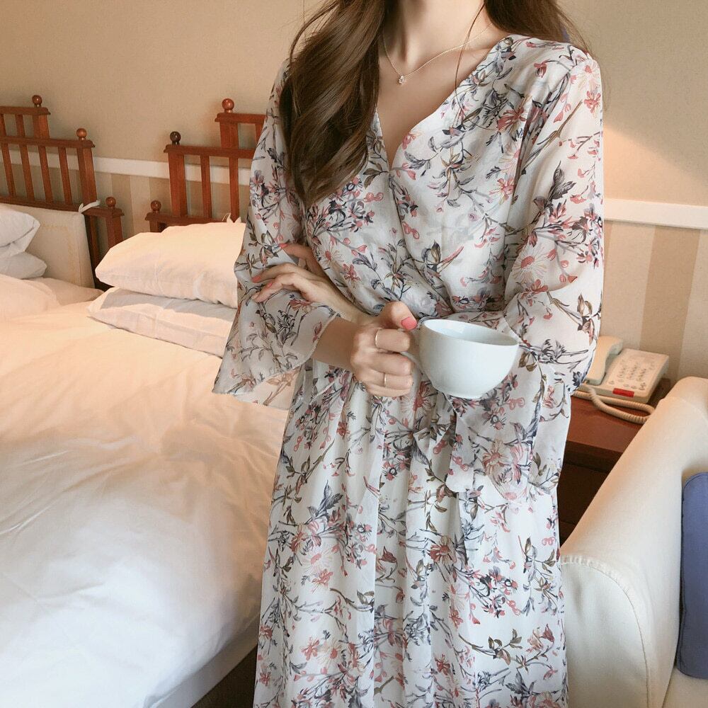ワンピース 膝丈 ひざ丈 膝下 袖あり 7分袖 七分袖 Vネック フレア シフォン 透け感 かわいい 大人可愛い きれいめ 大人 上品 おしゃれ お洒落 ラブリー キュート 主役級 存在感 柄 花柄 フラワー 春 夏 10代 20代 30代 レディース OL 学生 デート お出かけ 公園デビュー 女子会 お泊まり 休日 普段使い 韓国 韓国系 オルチャン モテ サイズ S M L XL 色展開 白 ホワイト 青 ブルー