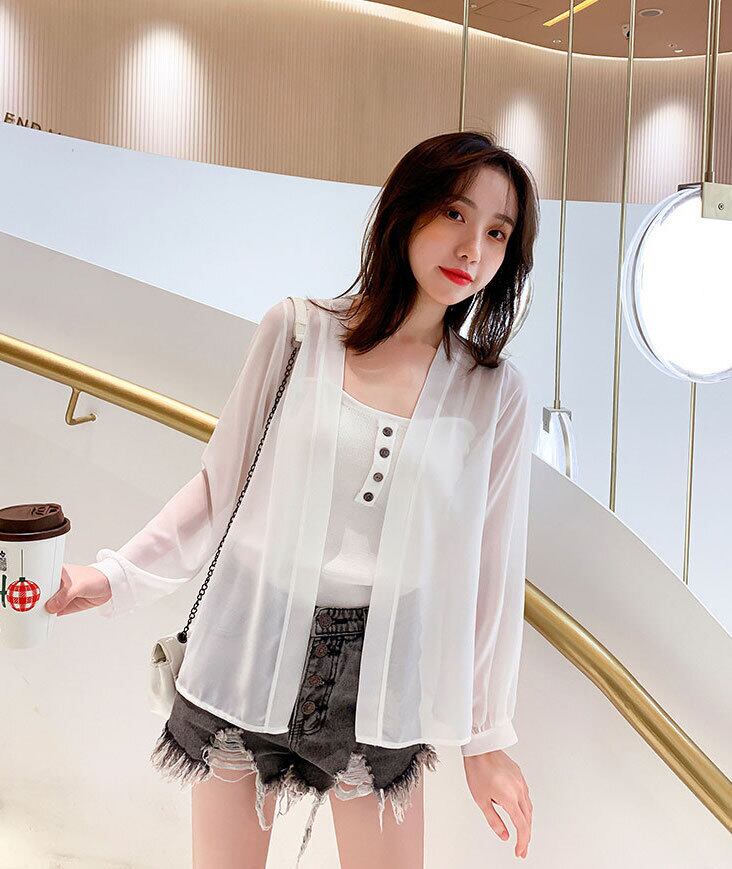 シースルー アウター カーディガン 袖あり 長袖 プリーツ 透け感 シースルー 大人可愛い きれいめ シンプル こなれ感 ラフ とろみ感 抜け感 清楚 着映え 無地 春 夏 レディース デート お出かけ 休日 着回し 普段使い 重ね着 防寒 S M L XL ホワイト