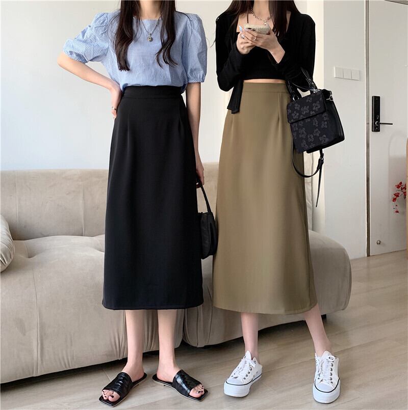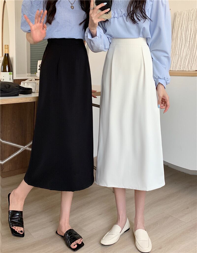 スカート ボトムス 膝下 ミモレ ミモレ丈 スリム タイト 細身 かわいい 大人可愛い きれいめ シンプル 大人 上品 おしゃれ お洒落 大人可愛い 大人女子 キュート 無地 春 夏 秋 10代 20代 30代 レディース OL 学生 デート お出かけ 公園デビュー 女子会 お泊まり 休日 着回し 普段使い 韓国 韓国系 オルチャン モテ サイズ S M L XL 色展開 白 ホワイト 黒 ブラック カーキ