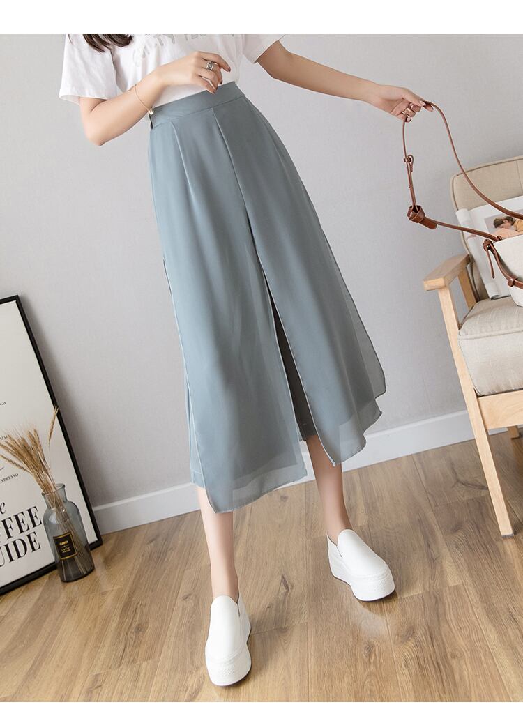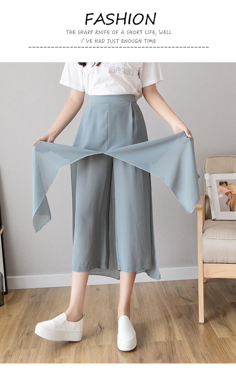 ボトムス パンツ 膝下 ミモレ ミモレ丈 フレア ワイド シフォン かわいい 大人可愛い きれいめ シンプル 大人 上品 おしゃれ お洒落 大人可愛い 大人女子 キュート 無地 春 夏 10代 20代 30代 レディース OL 学生 デート お出かけ 公園デビュー 女子会 お泊まり 休日 着回し 普段使い 韓国 韓国系 オルチャン モテ サイズ S M L XL 色展開 白 ホワイト 黒 ブラック 青 ブルー