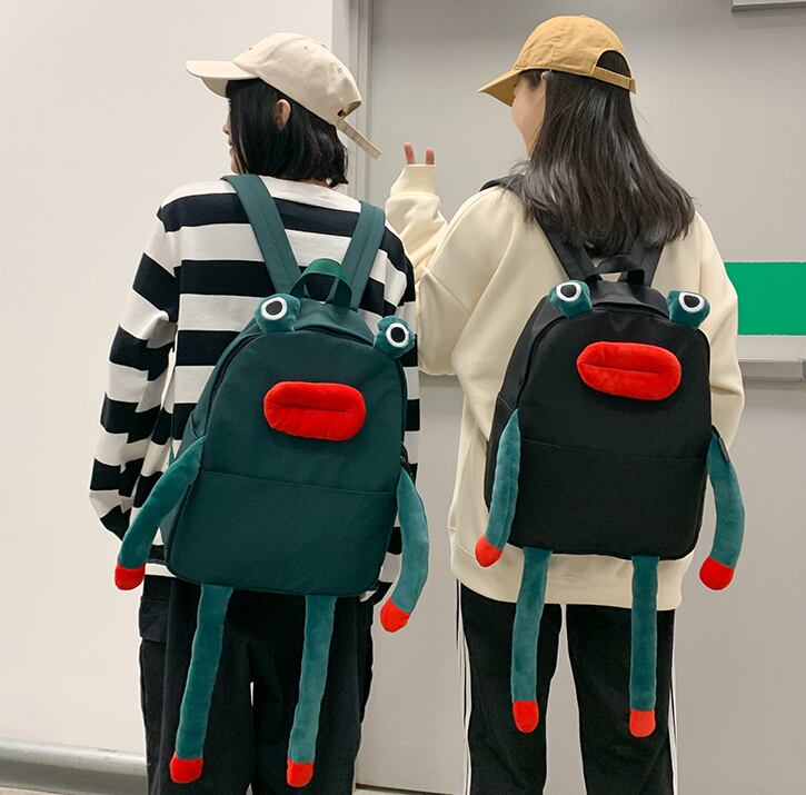 バッグ かばん 鞄 リュック リュックサック 大容量 収納 機能性 カジュアル ラフ 個性的 存在感 ユニーク シュール レディース メンズ ペア 男女兼用 ユニセックス 学生 通学 お出かけ 旅行 デイリー 普段使い お揃い 双子 オールシーズン A4 黒 ブラック 緑 グリーン