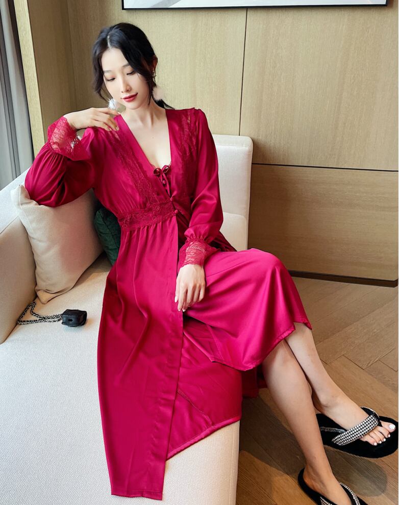 キャミワンピース ルームウェア ナイトドレス 部屋着 ナイトウェア キャミソール ガウン ネグリジェ 膝下 ミモレ丈 袖あり 長袖 レース 刺繍 フリル 透け感 2点セット ツーピース 大人可愛い きれいめ 上品 おしゃれ 大人女子 ラブリー セクシー エレガント とろみ感 清楚 ゴージャス お嬢様 春 夏 秋 レディース 女子会 お泊まり 休日 モテ 体系カバー インスタ映え M L XL ホワイト 黒 ブラック 赤 レッド 紫 パープル 灰色 グレー ピンク