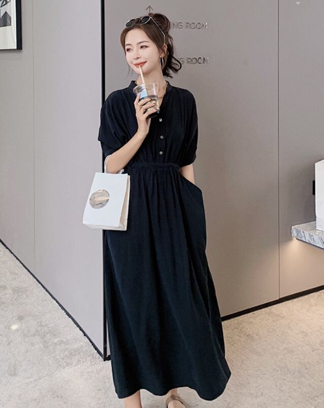 ワンピース シャツワンピース マキシ丈 袖あり Vネック 襟付き Aライン かわいい 大人可愛い きれいめ シンプル カジュアル 大人 おしゃれ レトロ 大人可愛い 大人女子 こなれ感 ラブリー キュート ガーリー とろみ感 無地 夏 オールシーズン レディース 通勤 学生 通学 デート お出かけ 公園デビュー 女子会 お泊まり 休日 アウトドア イベント 旅行 海 プール 高原 普段使い お揃い 韓国 ファッション 楽ちん モテ 脚長 S M L XL L 黒 ブラック