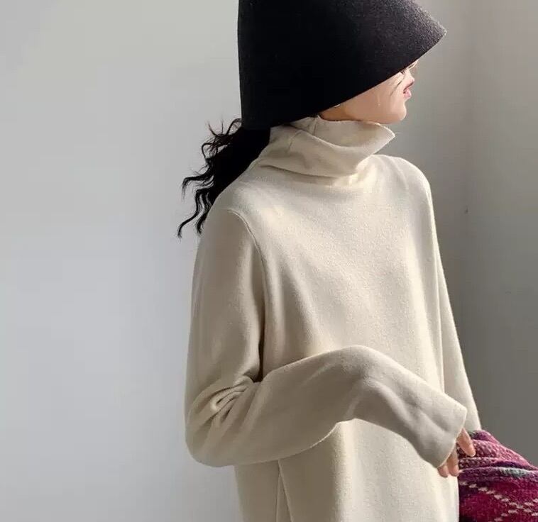 さらっと一枚で完成するタートルネックのニットワンピースです。