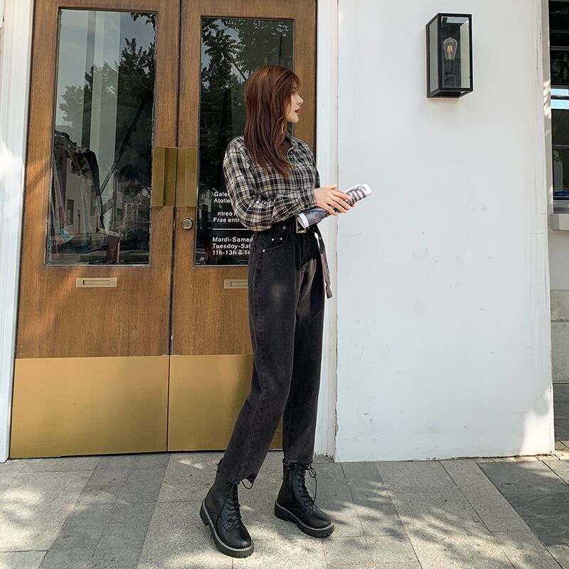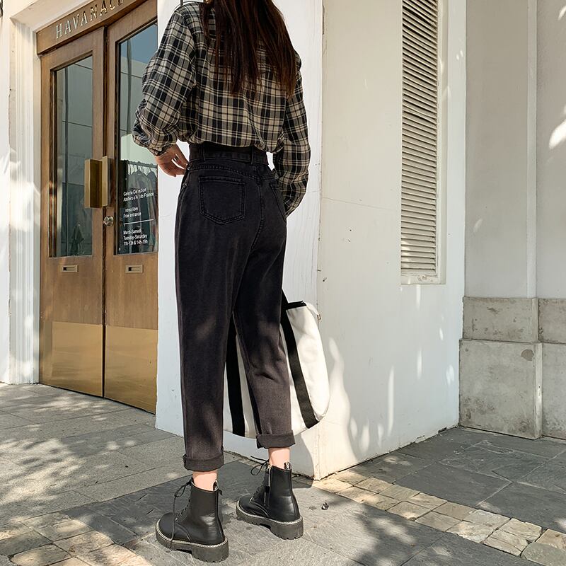 ベルト付き デニム ボトムス パンツ デニムパンツ アンクル丈 ハイウエスト シンプル カジュアル おしゃれ かっこいい こなれ感 メンズライク ボーイッシュ ガーリー 無地 オールシーズン レディース デート お出かけ 休日 着回し 普段使い 体系カバー 美脚 脚長 S M L XL 2XL 3XL 4XL 5XL 黒 ブラック