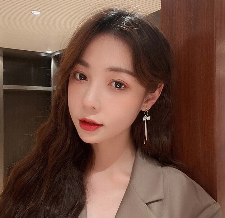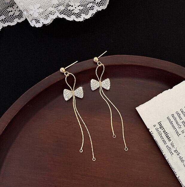 ロング リボン ピアス かわいい 大人可愛い シンプル 大人 おしゃれ 大人可愛い 春 夏 秋 冬 オールシーズン レディース 通勤 学生 デート お出かけ 公園デビュー 女子会 お泊まり 休日 旅行 着回し 普段使い 韓国 ファッション 定番 プチプラ ゴールド