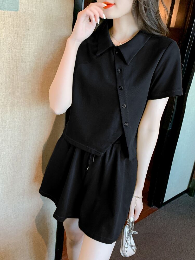 セットアップ シャツ ワイドパンツ ショート丈 袖あり 襟付き ワイド シフォン ハイウエスト アイスシルク ツーピース 大人可愛い きれいめ シンプル カジュアル 大人 上品 おしゃれ かっこいい 大人可愛い 大人女子 こなれ感 クール モード系 エレガント 存在感 フォーマル 無地 夏 シーズンレス レディース 学生 通学 デート お出かけ 女子会 お泊まり 休日 旅行 リクルート 就活 普段使い 韓国 ファッション コーデ スタイル 楽ちん 美脚 脚長 S M L XL 黒 ブラック グレー カーキ