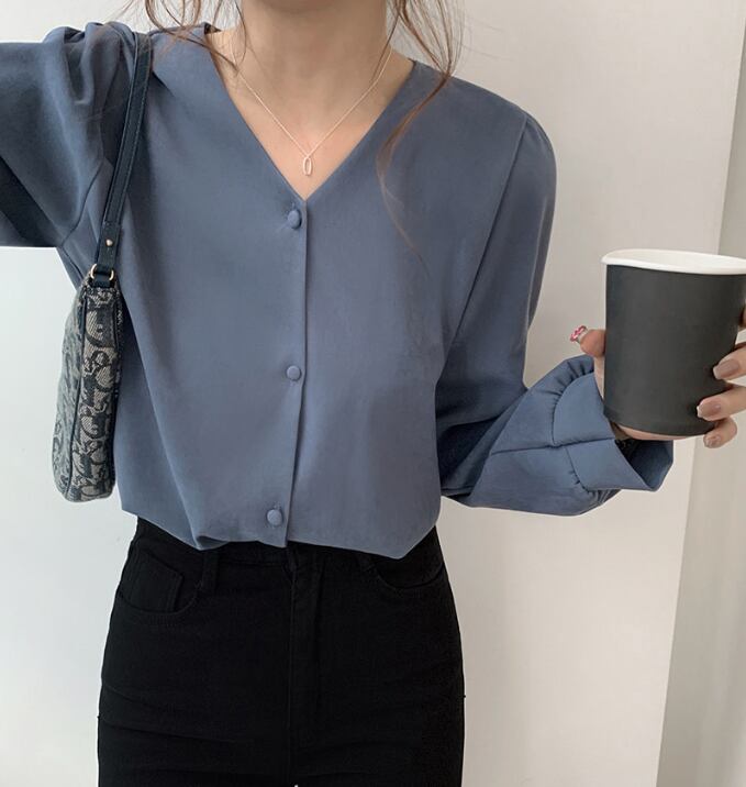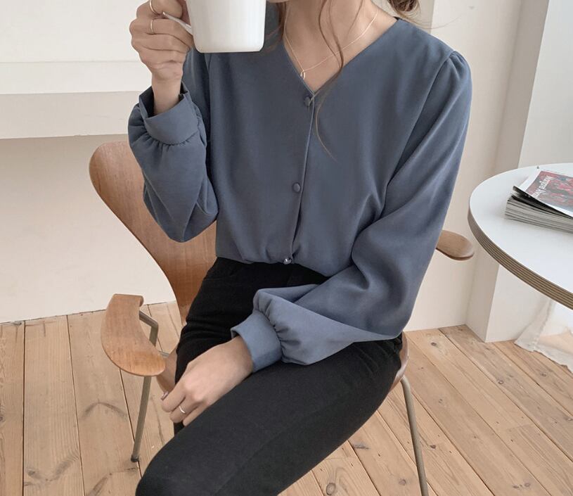 韓国風、秋・冬にぴったりV ネック長袖シャツ。