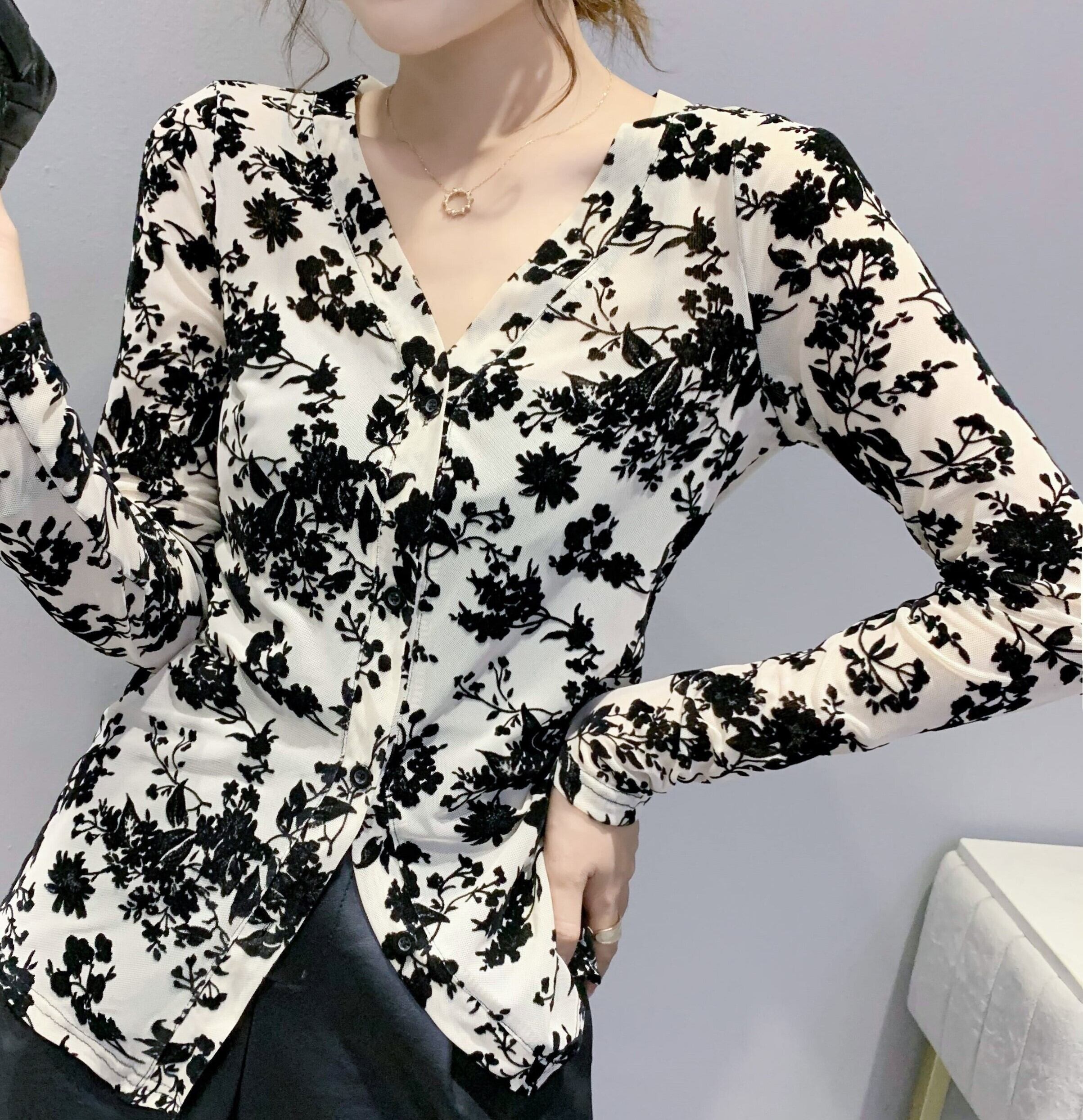 トップス Vネック カーディガン 袖あり 長袖 萌袖 Vネック スリム フィット 前開き 透け感 薄手 大人可愛い カジュアル おしゃれ 大人女子 ルーズ セクシー クール エレガント モダン 存在感 柄 花柄 フラワー ボタニカル 春 秋 20代 30代 通勤 デート お出かけ 女子会 休日 着回し 韓国 ファッション コーデ スタイル 楽ちん 高見え サイズ M L XL 2XL 0 色展開 白 ホワイト 黒 ブラック 大人カラー モノトーン