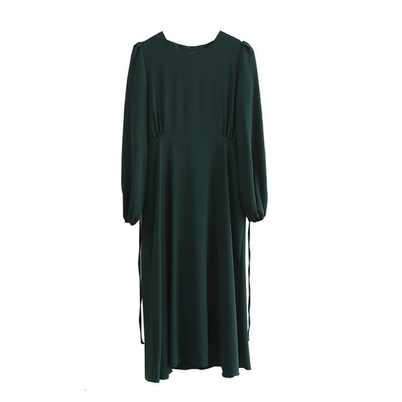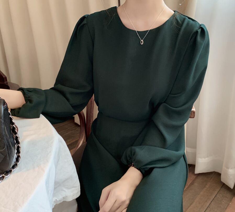 ワンピース ロング ロング丈 袖あり 長袖 萌袖 ラウンドネック セミフレア Aライン ハイウエスト ラビット かわいい 大人可愛い きれいめ シンプル カジュアル 大人 上品 おしゃれ お洒落 かっこいい レトロ 大人可愛い 大人女子 こなれ感 クール モード系 セクシー 無地 秋 冬 レディース 学生 デート お出かけ 女子会 お泊まり 休日 旅行 普段使い 韓国 韓国系 オルチャン ファッション コーデ スタイル 楽ちん S M L XL フリーサイズ 緑 グリーン