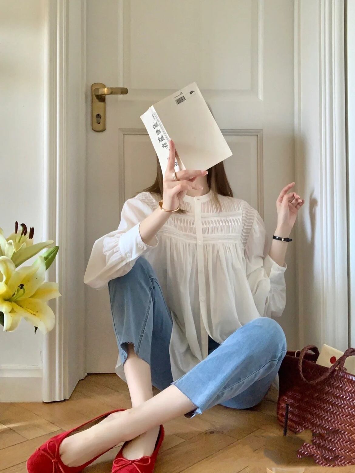 トップス シャツ ブラウス 白トップス 袖あり ボリューム袖 Vネック ラウンドネック フレア 前開き 大人可愛い きれいめ シンプル カジュアル 大人 上品 おしゃれ お洒落 大人女子 こなれ感 ラフ キュート エレガント ボーダー 春 夏 秋 冬 オールシーズン シーズンレス 2022 2023 10代 20代 30代 40代 50代 60代 レディース 女性用 キッズ 女の子 デート お出かけ 女子会 休日 普段使い ファッション コーデ スタイル モテ S M L XL フリーサイズ 白 ホワイト