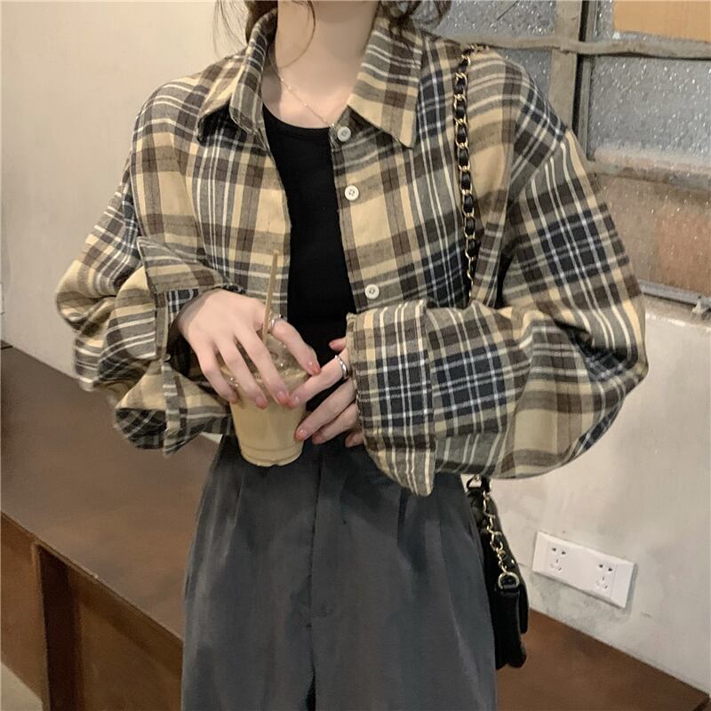 トップス シャツ ミニ丈 ショート ショート丈 袖あり 長袖 襟付き 前開き 大人可愛い シンプル カジュアル 大人 おしゃれ お洒落 かっこいい レトロ 大人女子 こなれ感 ラフ メンズライク チェック柄 春 秋 冬 2022 2023 10代 20代 30代 レディース 女性用 学生 通学 デート お出かけ 女子会 休日 ファッション コーデ スタイル フリーサイズ 青 ブルー イエロー