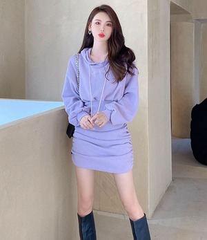 ワンピース プルオーバー ショート ショート丈 袖あり 長袖 タイト 細身 フード付き クロシェ 綿 ニット かわいい 大人可愛い きれいめ シンプル カジュアル 大人 上品 おしゃれ お洒落 かっこいい レトロ 大人可愛い 大人女子 こなれ感 クール モード系 セクシー 無地 秋 冬 レディース 通学 デート お出かけ 女子会 休日 旅行 お揃い 双子 韓国 韓国系 オルチャン ファッション コーデ スタイル 美脚 脚長 S M L XL 黒 ブラック グレー