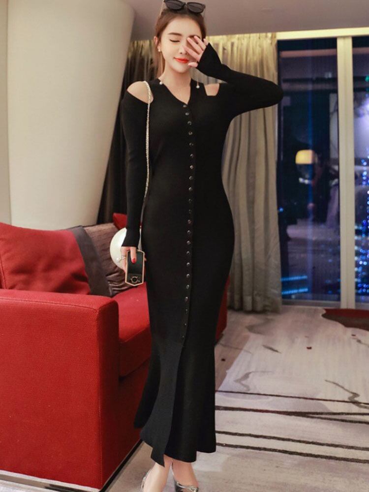 ワンピース マキシ マキシ丈 袖あり 長袖 Vネック タイト 細身 かわいい 大人可愛い きれいめ シンプル カジュアル 大人 上品 おしゃれ お洒落 かっこいい レトロ 大人可愛い 大人女子 こなれ感 クール モード系 セクシー 無地 秋 冬 レディース デート お出かけ 女子会 休日 旅行 ホテル お揃い 双子 韓国 韓国系 オルチャン ファッション コーデ スタイル モテ 美脚 脚長 フリーサイズ 黒 ブラック