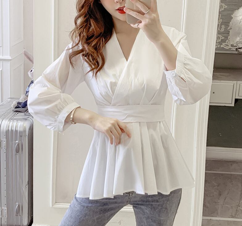 トップス シャツ ブラウス 白トップス 袖あり 長袖 Vネック プリーツ かわいい 大人可愛い きれいめ シンプル カジュアル 大人 上品 おしゃれ お洒落 かっこいい レトロ 大人可愛い 大人女子 こなれ感 クール モード系 セクシー 無地 春 夏 秋 レディース デート お出かけ 女子会 休日 旅行 韓国 韓国系 オルチャン ファッション コーデ スタイル モテ S M L XL 2XL 白 ホワイト 秋カラー