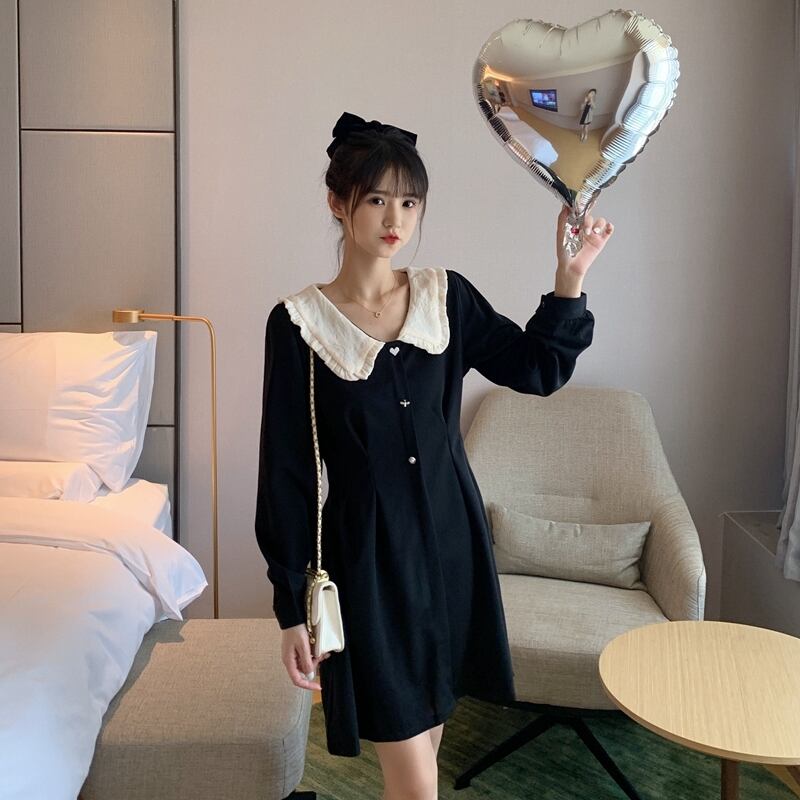 ワンピース フレアワンピース ミニ丈 ショート ショート丈 膝上 袖あり 長袖 Vネック 襟付き フレア セミフレア フリル ウエストマーク 大人可愛い おしゃれ お洒落 レトロ ラブリー キュート ガーリー 春 秋 冬 2022 2023 10代 20代 レディース 女性用 キッズ 女の子 学生 デート お出かけ 休日 普段使い お揃い 双子 ファッション コーデ スタイル 楽ちん モテ 体系カバー 美脚 脚長 M L XL 2XL 3XL 4XL 黒 ブラック