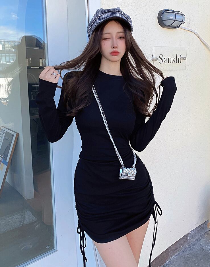 ワンピース ミニ丈 ショート ショート丈 袖あり 長袖 ラウンドネック タイト 細身 ストレート シンプル 大人 おしゃれ お洒落 かっこいい 大人女子 モード系 セクシー 主役級 存在感 春 夏 秋 冬 オールシーズン シーズンレス 2022 2023 10代 20代 30代 レディース 女性用 女子会 休日 パーティー イベント ファッション コーデ 楽ちん M L XL 2XL 3XL 4XL 黒 ブラック