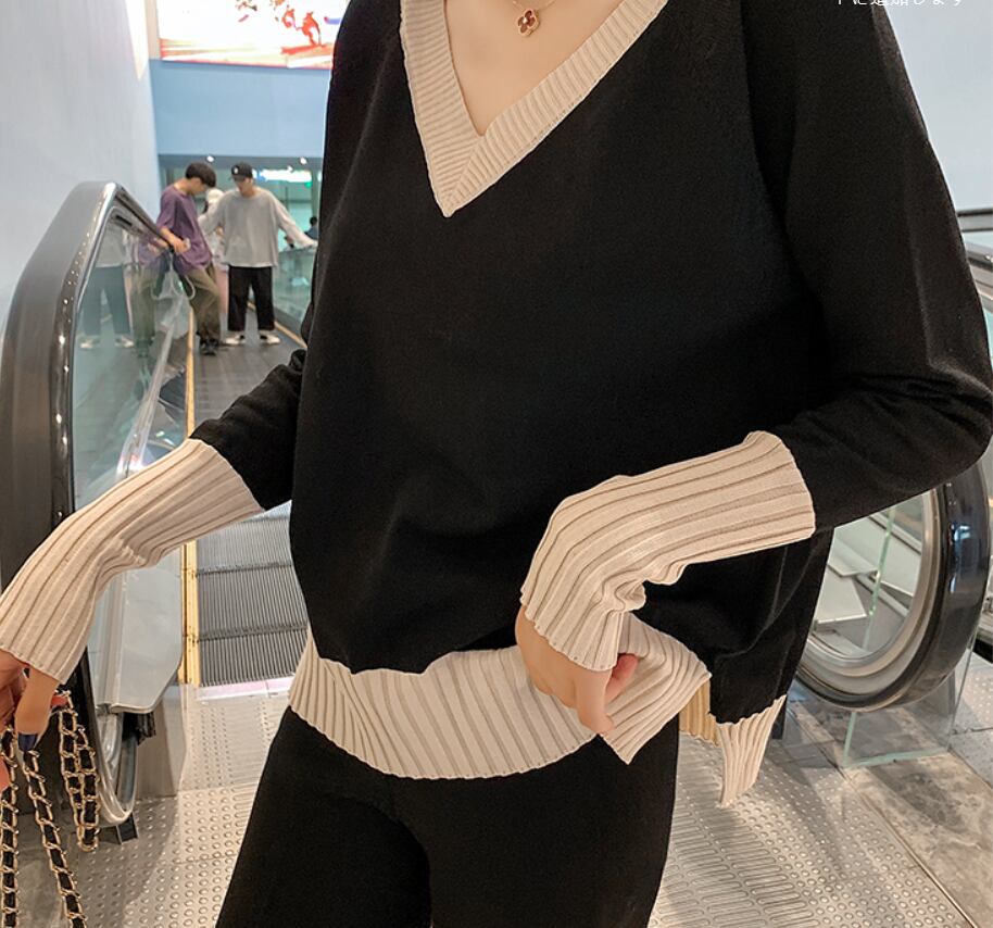 トップス パンツ ニットソー ワイドパンツ マキシ丈 袖あり 長袖 Vネック 襟なし ストレート ワイド 上下セット 2点セット 大人可愛い きれいめ シンプル カジュアル 大人 おしゃれ お洒落 かっこいい 大人可愛い 大人女子 こなれ感 ラフ 無地 秋 冬 10代 20代 30代 レディース 女性用 OL 通勤 学生 通学 デート お出かけ 女子会 お泊まり 休日 旅行 着回し 普段使い 重ね着 韓国系 ファッション コーデ スタイル 楽ちん モテ S M L XL 2XL
