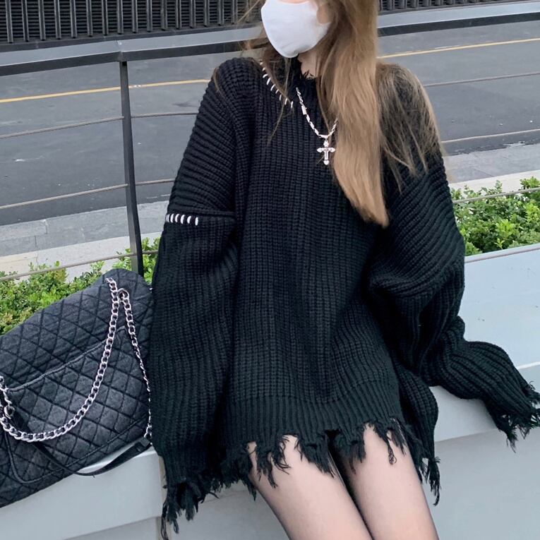 トップス 袖あり 長袖 ボリューム袖 ラウンドネック ワイド ニット カジュアル 大人 おしゃれ お洒落 かっこいい 大人女子 こなれ感 ラフ メンズライク ルーズ クール モード系 秋 冬 2022 2023 10代 20代 30代 40代 レディース 女性用 お出かけ 女子会 休日 ファッション コーデ スタイル 暖かい S M L 黒 ブラック