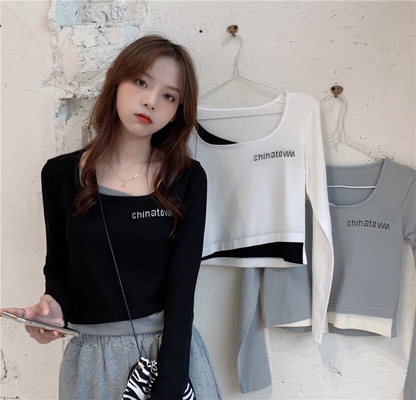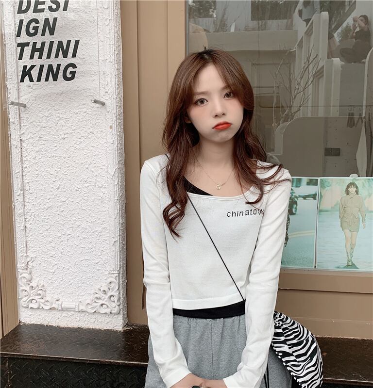 重ね着風のデザインがおしゃれな長袖トップスです。