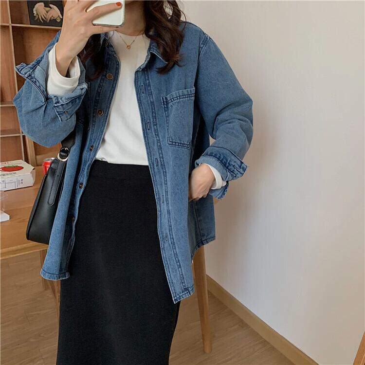 トップス シャツ 袖あり 長袖 襟付き デニム きれいめ シンプル カジュアル 大人 上品 おしゃれ お洒落 かっこいい 大人女子 こなれ感 ラフ 春 秋 冬 2022 2023 10代 20代 30代 40代 50代 60代 レディース 女性用 学生 通学 お出かけ 休日 アウトドア 旅行 普段使い 重ね着 ファッション コーデ スタイル S M L 青 ブルー