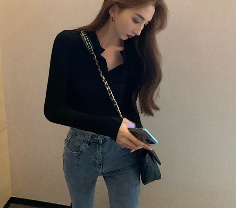 ヘソ出し トップス Tシャツ 白トップス ミニ ミニ丈 ショート ショート丈 袖あり 長袖 萌袖 Vネック 襟付き スリム タイト 細身 スマート リブ 伸縮性 薄手 かわいい 大人可愛い シンプル カジュアル 大人 おしゃれ お洒落 かっこいい 大人可愛い 大人女子 こなれ感 ラフ セクシー 存在感 無地 春 秋 冬 ハロウィン クリスマス バレンタイン 10代 20代 30代 レディース 女性用 ママ OL 通勤 学生 通学 デート お出かけ 公園デビュー 女子会 お泊まり 休日