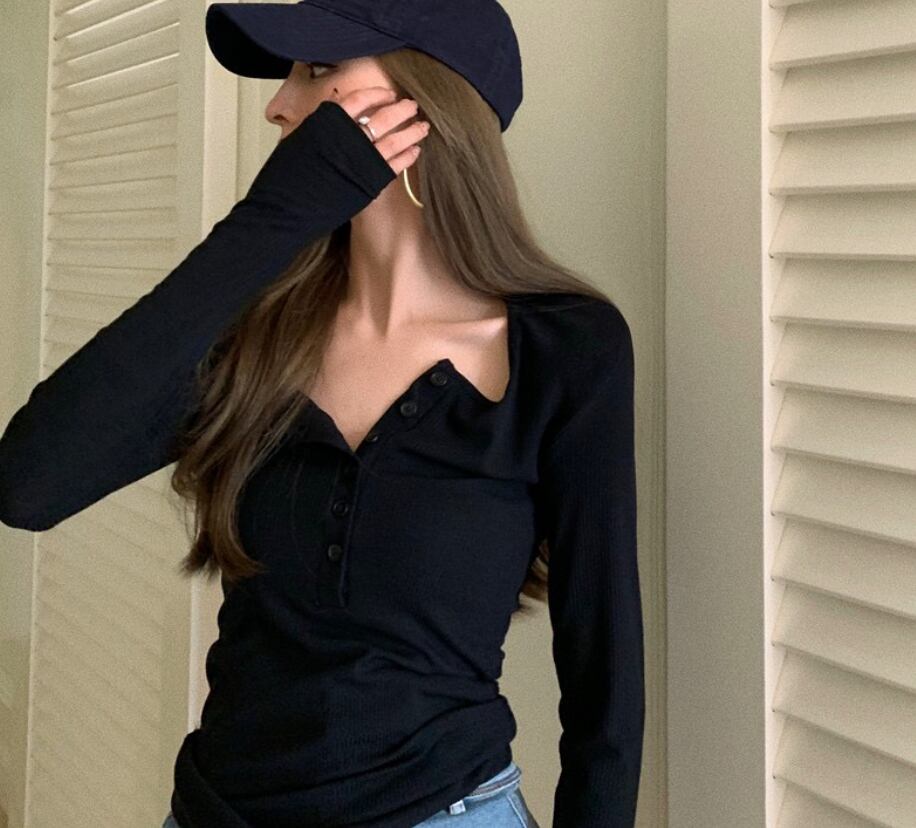 トップス Tシャツ 袖あり 長袖 萌袖 Uネック 襟なし スリム 細身 Iライン スマート 前開き 伸縮性 薄手 かわいい 大人可愛い シンプル カジュアル 大人 おしゃれ お洒落 かっこいい 大人可愛い 大人女子 こなれ感 ラフ セクシー 無地 春 秋 冬 ハロウィン クリスマス バレンタイン 10代 20代 30代 レディース 女性用 ママ オフィス OL 通勤 学生 通学 デート お出かけ 公園デビュー 女子会 お泊まり 休日 イベント 旅行 高原 着回し 普段使い 重ね着