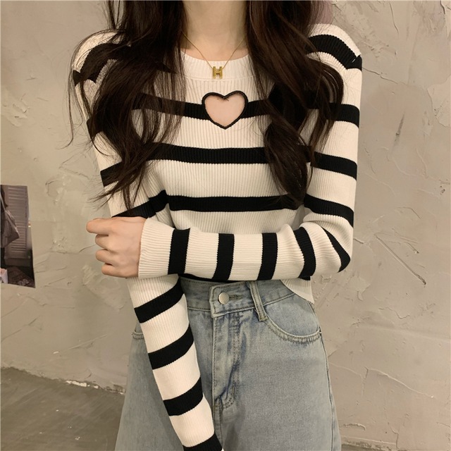 胸元のハートデザインが可愛らしいボーダートップスです。