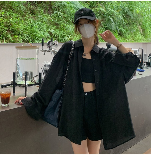 トップス シャツ ブラウス 袖あり 長袖 襟付き ワイド 透け感 シースルー きれいめ シンプル カジュアル 大人 おしゃれ お洒落 かっこいい 大人女子 こなれ感 ラフ モード系 セクシー モダン とろみ感 抜け感 春 夏 秋 冬 オールシーズン シーズンレス 2022 2023 10代 20代 30代 40代 50代 60代 レディース 女性用 お出かけ 休日 アウトドア 旅行 海 プール ファッション コーデ スタイル フリーサイズ 白 ホワイト 黒 ブラック