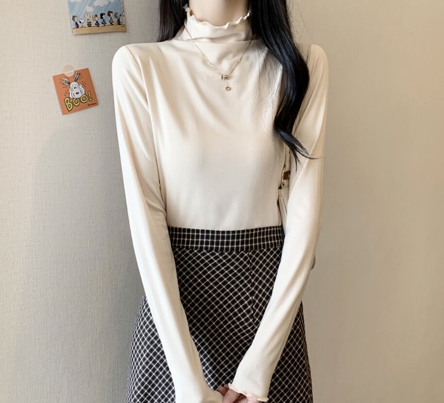 トップス Tシャツ 白トップス 袖あり 長袖 萌袖 ハイネック 襟なし 細身 ストレート Iライン フリル 伸縮性 薄手 かわいい 大人可愛い シンプル カジュアル 大人 上品 おしゃれ お洒落 大人可愛い 大人女子 こなれ感 ラフ ガーリー とろみ感 抜け感 無地 春 秋 誕生日 ハロウィン 10代 20代 30代 レディース 女性用 ママ マタニティ オフィス ビジネス OL 通勤 学生 通学 デート お出かけ 公園デビュー 女子会 お泊まり 休日 イベント 旅行 高原 ガーデン