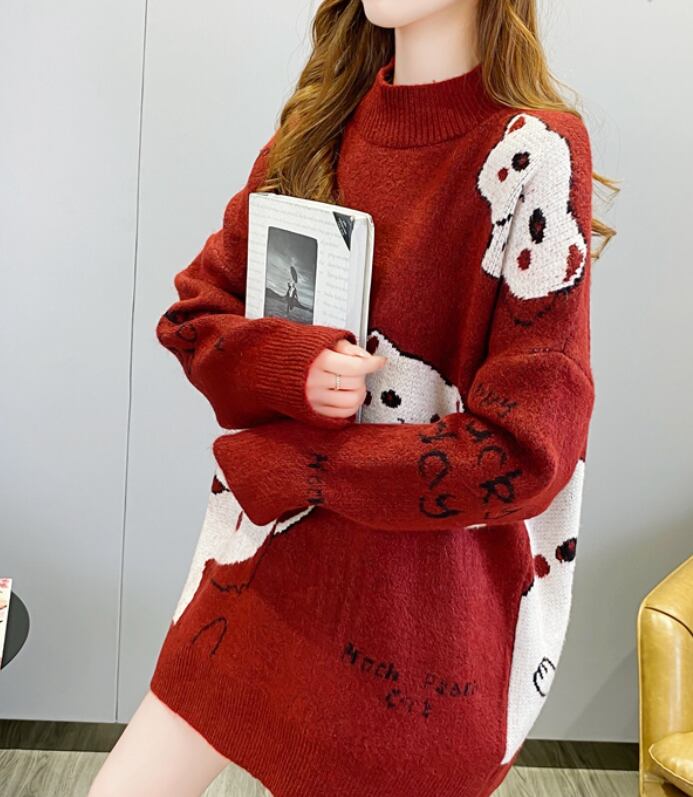 秋冬にぴったり。大きめサイズ、レディースロング丈セーター。