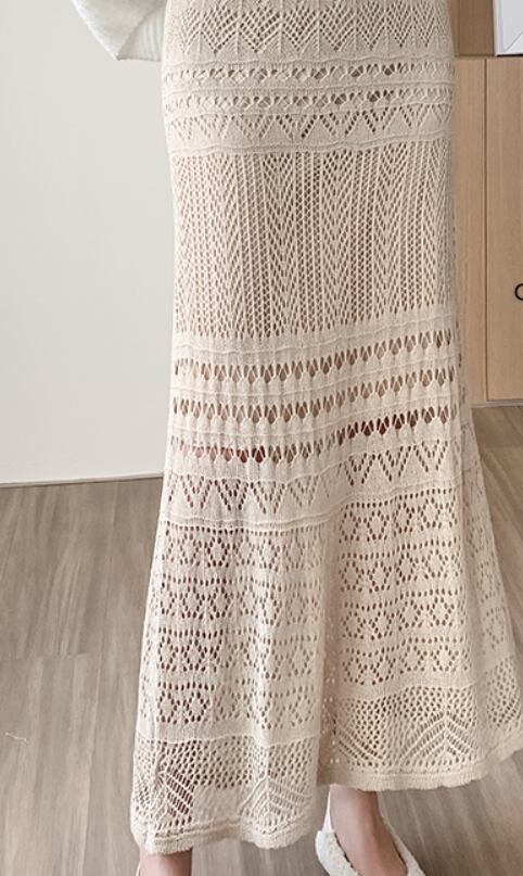 秋冬向けのニットスカート。フィッシュテールが女性らしい。