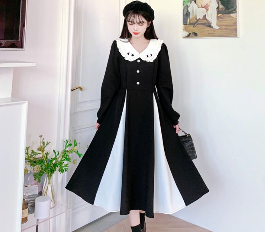 ワンピース フレアワンピース ミモレ ミモレ丈 袖あり 長袖 萌袖 襟付き Aライン レース フリル ハイウエスト 厚手 かわいい 大人可愛い きれいめ カジュアル 大人 上品 おしゃれ お洒落 レトロ 大人可愛い 大人女子 こなれ感 ガーリー 個性的 存在感 とろみ感 抜け感 無地 秋 冬 誕生日 ハロウィン クリスマス バレンタイン 10代 20代 30代 レディース 女性用 ママ オフィス ビジネス OL 通勤 学生 通学 デート お出かけ 公園デビュー 女子会 お泊まり 休日 イベント 旅行
