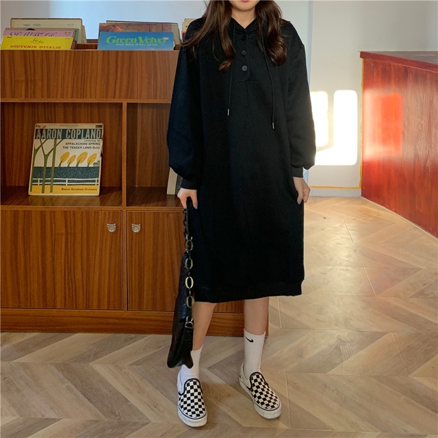 ワンピース 膝丈 ひざ丈 袖あり 長袖 ラウンドネック ストレート フード付き 大人可愛い きれいめ シンプル カジュアル 大人 上品 おしゃれ お洒落 かっこいい 大人女子 こなれ感 ラフ 無地 春 秋 冬 2022 2023 10代 20代 30代 40代 50代 60代 レディース 女性用 学生 通学 お出かけ お泊まり 休日 アウトドア 普段使い 重ね着 オルチャン ファッション コーデ スタイル 楽ちん 暖かい 防寒 フリーサイズ 黒 ブラック オレンジ