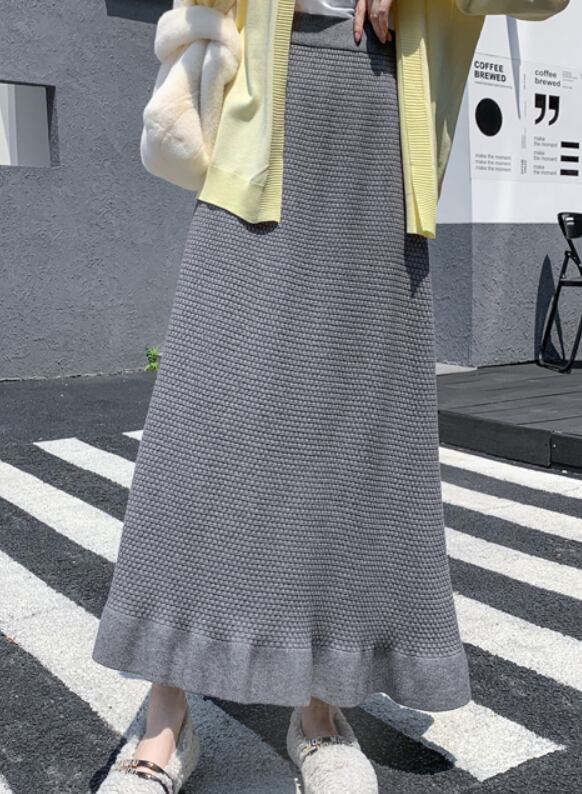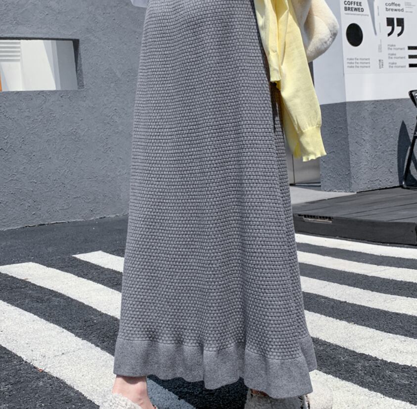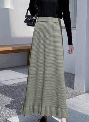秋冬にぴったりなニットマキシ丈ロングスカート。