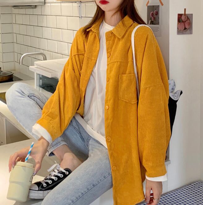 レディースコーデュロイシャツ。 ゆったりめレイジースタイル。