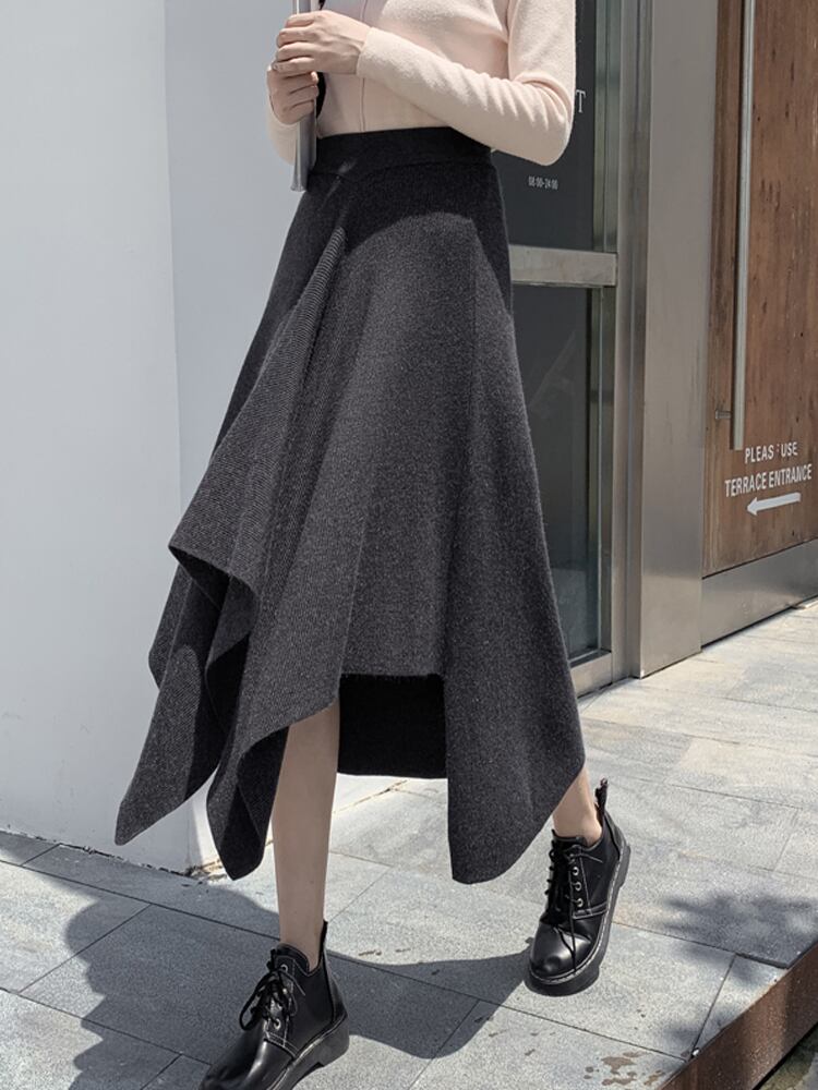 スカート ボトムス ロングスカート ロング ロング丈 Aライン アシンメトリー ハイウエスト ウエストゴム 伸縮性 ニット 厚手 かわいい 大人可愛い きれいめ シンプル カジュアル 大人 おしゃれ お洒落 かっこいい 大人可愛い 大人女子 こなれ感 ラフ 個性的 セクシー 主役級 存在感 とろみ感 抜け感 無地 秋 冬 誕生日 ハロウィン クリスマス バレンタイン 10代 20代 30代 レディース 女性用 ママ オフィス ビジネス OL 通勤 学生 通学 デート お出かけ 公園デビュー 女子会