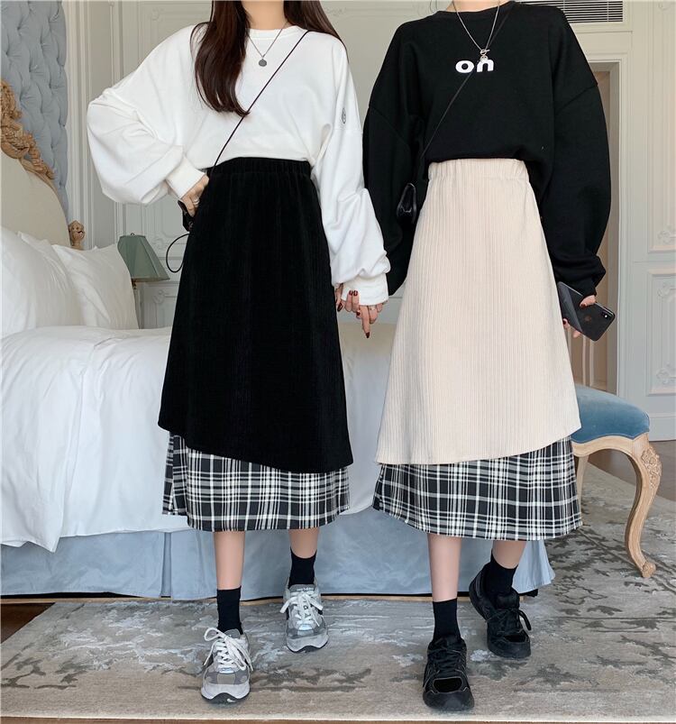 スカート ボトムス ミモレ ミモレ丈 フレア セミフレア 切り替えデザイン 大人可愛い シンプル カジュアル おしゃれ お洒落 レトロ こなれ感 キュート ガーリー ルーズ 個性的 チェック柄 格子柄 秋 冬 2022 2023 10代 20代 30代 40代 50代 レディース 女性用 女の子 学生 通学 デート お出かけ 女子会 休日 普段使い ファッション コーデ スタイル 楽ちん フリーサイズ 白 ホワイト 黒 ブラック