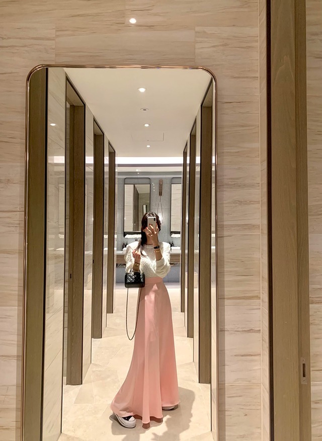 スカート フレアスカート 膝下 ロング マキシ丈 フレア ストレート シフォン かわいい 大人可愛い 大人 上品 おしゃれ お洒落 大人可愛い 大人女子 キュート 春 夏 秋 20代 30代 40代 50代 レディース 学生 デート お出かけ 女子会 お泊まり 休日 イベント 旅行 普段使い 韓国 オルチャン ファッション コーデ スタイル フリーサイズ ホワイト ブラック ピンク