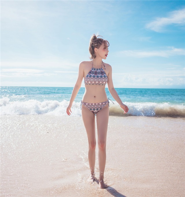 ビキニ 水着 エスニック柄 ホルタービキニ ブルマ セクシー サイドリボン 可愛い水着 大人 紐デザイン かわいい セクシー 華やか 女っぽ ラブリー キュート 10代 20代 30代 40代 春 夏 海 ビーチ プール リゾート 旅行 美スタイル プレゼント 新作 送料無料 トレンド 流行 インスタ映え M L XL