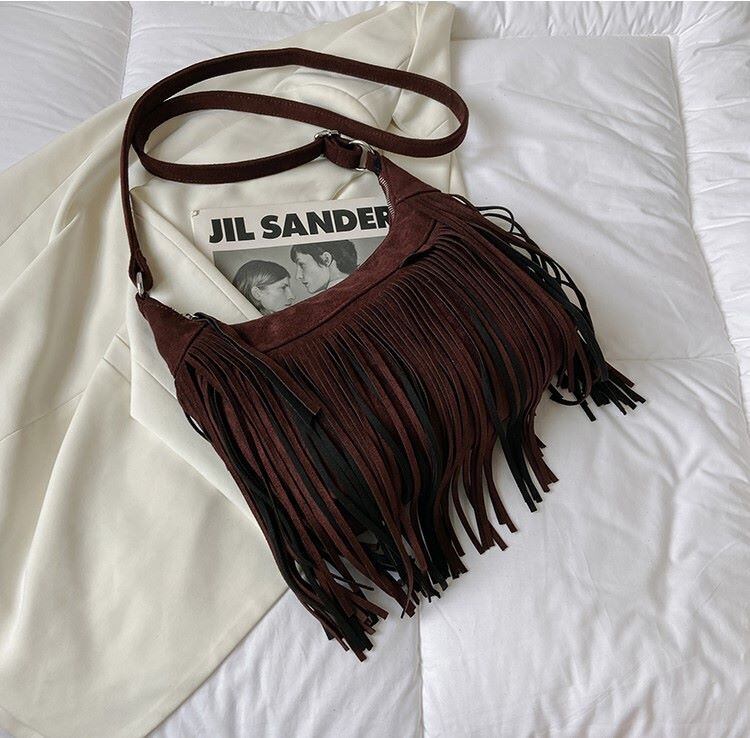 エスニックなデザインがおしゃれなショルダーバッグです。フリンジやタッセル、ビーズなどのディテールが充実しており、どこかボヘミアンな雰囲気を醸し出しています。合わせるファッションを選ばないので、カジュアルにもフォーマルにも合わせられます。また、ショルダーとクロスボディにもなるので、幅広く使えます。