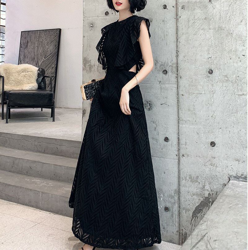 ドレス パーティードレス 二次会ドレス 発表会ドレス ステージドレス ロング丈 ノースリーブ Uネック Aライン レース ポリエステル きれいめ 大人 上品 お洒落 かっこいい クール エレガント 存在感 抜け感 無地 レディース お出かけ 休日 パーティー イベント 旅行 韓国 ファッション スタイル 脚長 プレゼント 送料無料 高見え 春 夏 二次会 披露宴 パーティー 発表会 XS S M L XL 2XL ブラック
