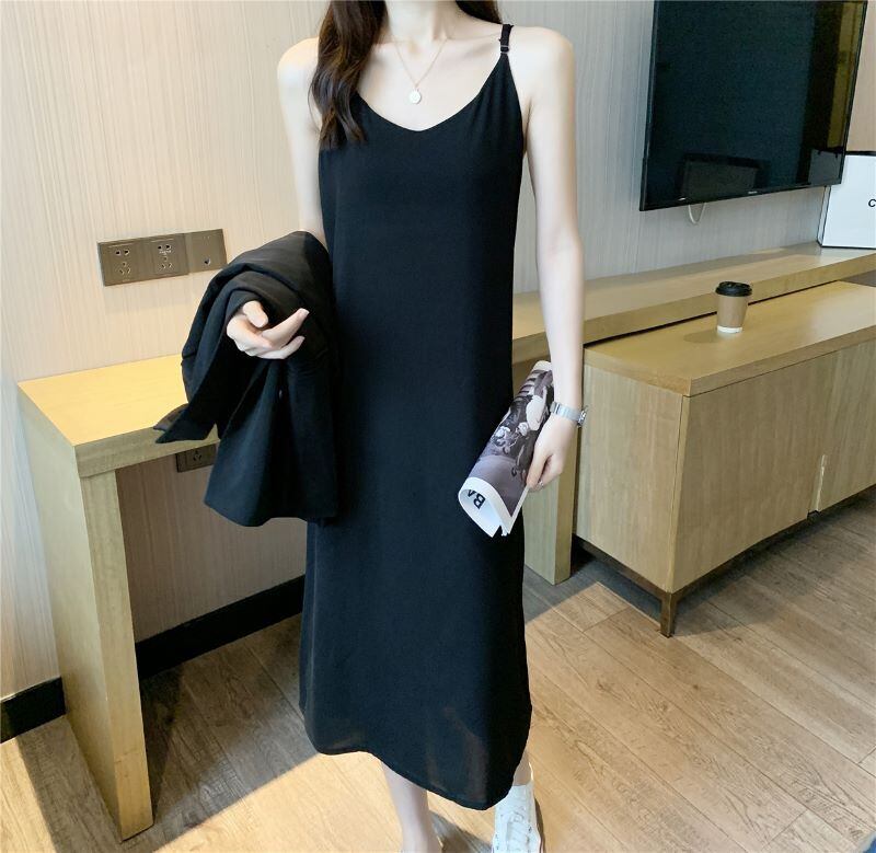 ワンピース キャミワンピース キャミワンピ ロングワンピース Vネック シフォン ポリエステル シンプル カジュアル 大人 おしゃれ 無地 春 夏 レディース お出かけ 休日 旅行 海 プール 普段使い 韓国 ファッション スタイル 体系カバー 送料無料 S M L XL 2XL ホワイト ブラック ブルー グリーン ベージュ