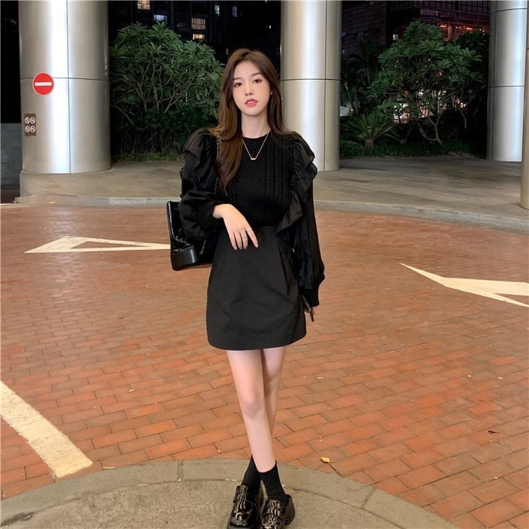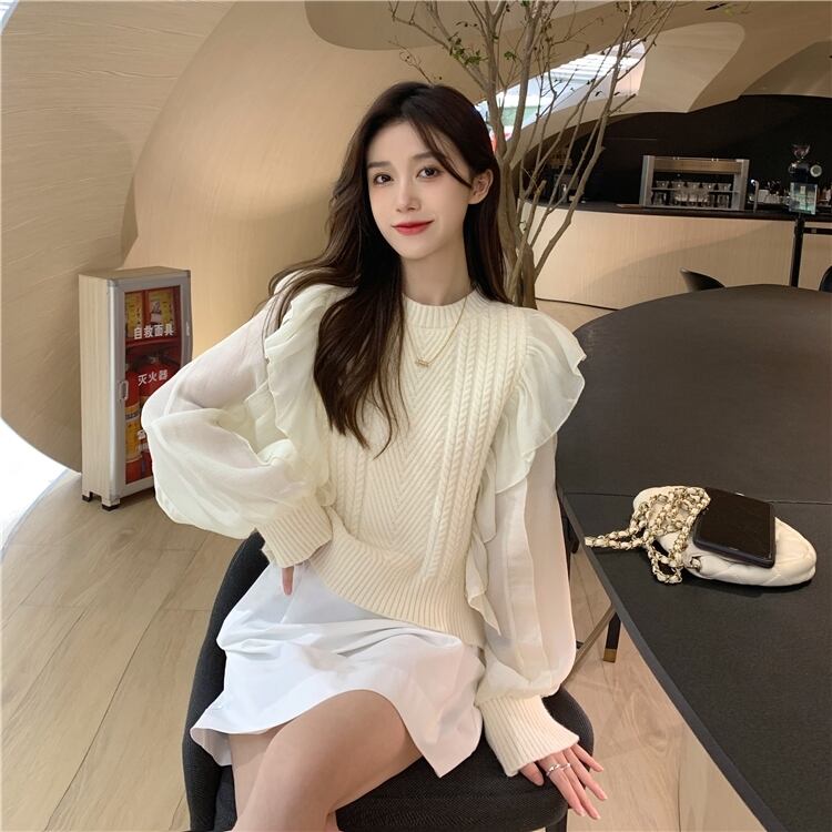 イマドキ女子に大人気のフリル長袖パッチワークツイストセーター。トレンドのフリルステッチがポイントで、可愛らしさと女性らしさを一緒に叶えます。