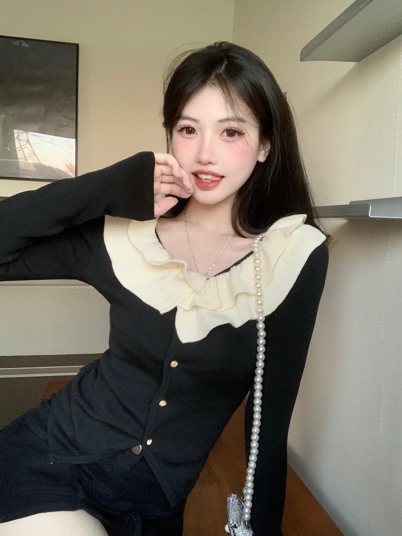 レディース トップス カットソー フリル レース フェミニン スウィート シャーリング ギャザー ニットソー セーター カーディガン ショート丈 長袖 ボリューム袖 ラウンドネック フリル かわいい カジュアル 大人 おしゃれ 大人可愛い 無地 ボーダー 春 秋 冬 レディース デート お出かけ 休日 旅行 普段使い 韓国 ファッション スタイル 楽ちん 防寒 プレゼント 送料無料 フリーサイズ ゆったり ブラック