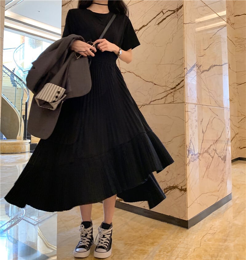 プリーツスカート ロング スカート レディース フィッシュテールスカート プリーツ 不規則 フリル きれいめ 大人 上品 おしゃれ お洒落 エレガント 存在感 春 夏 秋 レディース デート お出かけ 休日 旅行 普段使い 韓国 ファッション スタイル 美脚 送料無料 S M L XL ホワイト ブラック