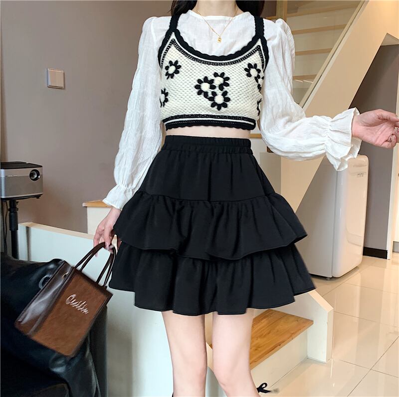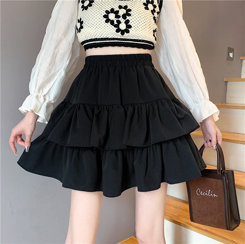 スカート ミニ丈 フリル Aライン ウエストゴム フレアスカート キュロットスカート かわいい 大人 おしゃれ キュート 存在感 無地 オールシーズン レディース デート お出かけ 女子会 休日 旅行 普段使い 韓国 ファッション 楽ちん 脚長 送料無料 S M L XL 2XL 3XL 4XL ブラック